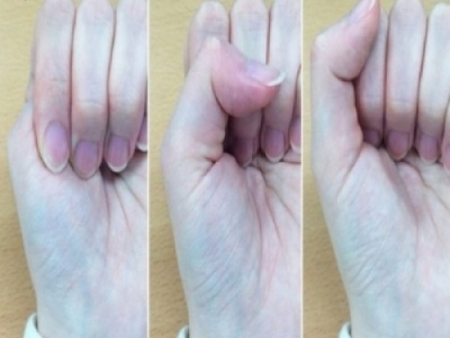 ▼3. 握拳時,大拇指被壓在四只手指下面:
