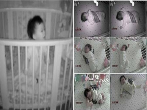 疑惑的父母就在寶寶的小床邊安裝了一個監視器,