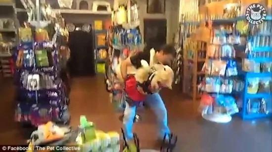 真人版與野獸共舞!男子在商店裡與愛犬共舞,一人一狗默契絕佳!